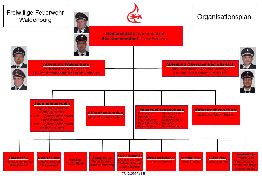 Die Freiwillige Feuerwehr der Stadt Waldenburg besteht aus zwei Einsatzabteilungen, der Jugendfeuerwehr und den Alterskameraden. Der Standort der Abteilung 1 ist in Waldenburg, der Standort der Abteilung 2 in Obersteinbach. Insgesamt engagieren sich in Waldenburg über 50 Erwachsene aller Altersgruppen und über 30 Kinder und Jugendliche im ehrenamtlichen Feuerwehrdienst und lassen ihre Freizeit damit dem Allgemeinwohl zugute kommen.